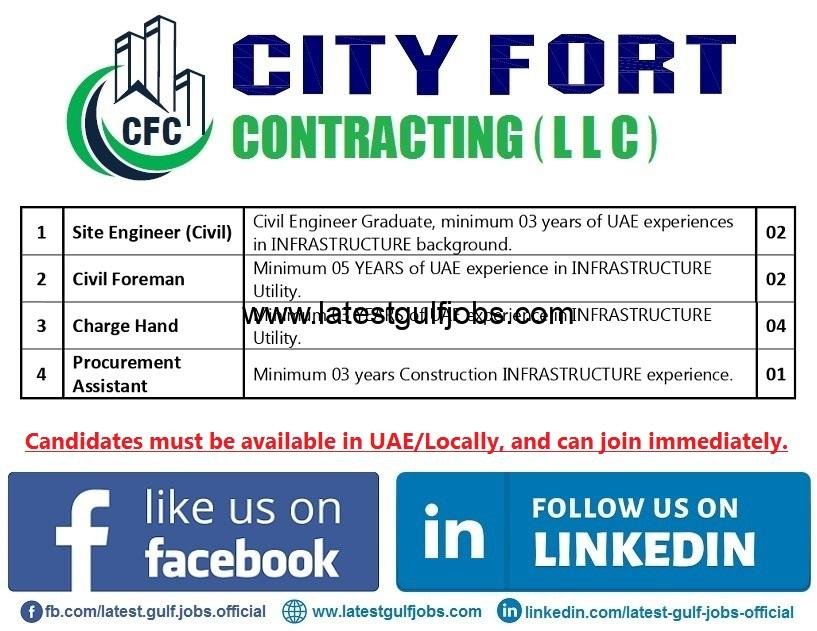 City Fort Contracting LLC is looking for the following positions for their Construction Project in Dubai, United Arab Emirates.