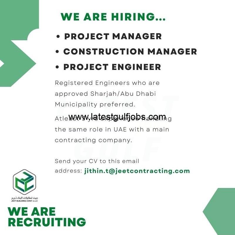 Jeet Building Contracting LLC hiring professional Engineering background individuals for their Construction projects in Abu Dhabi, Sharjah, United Arab Emirates.